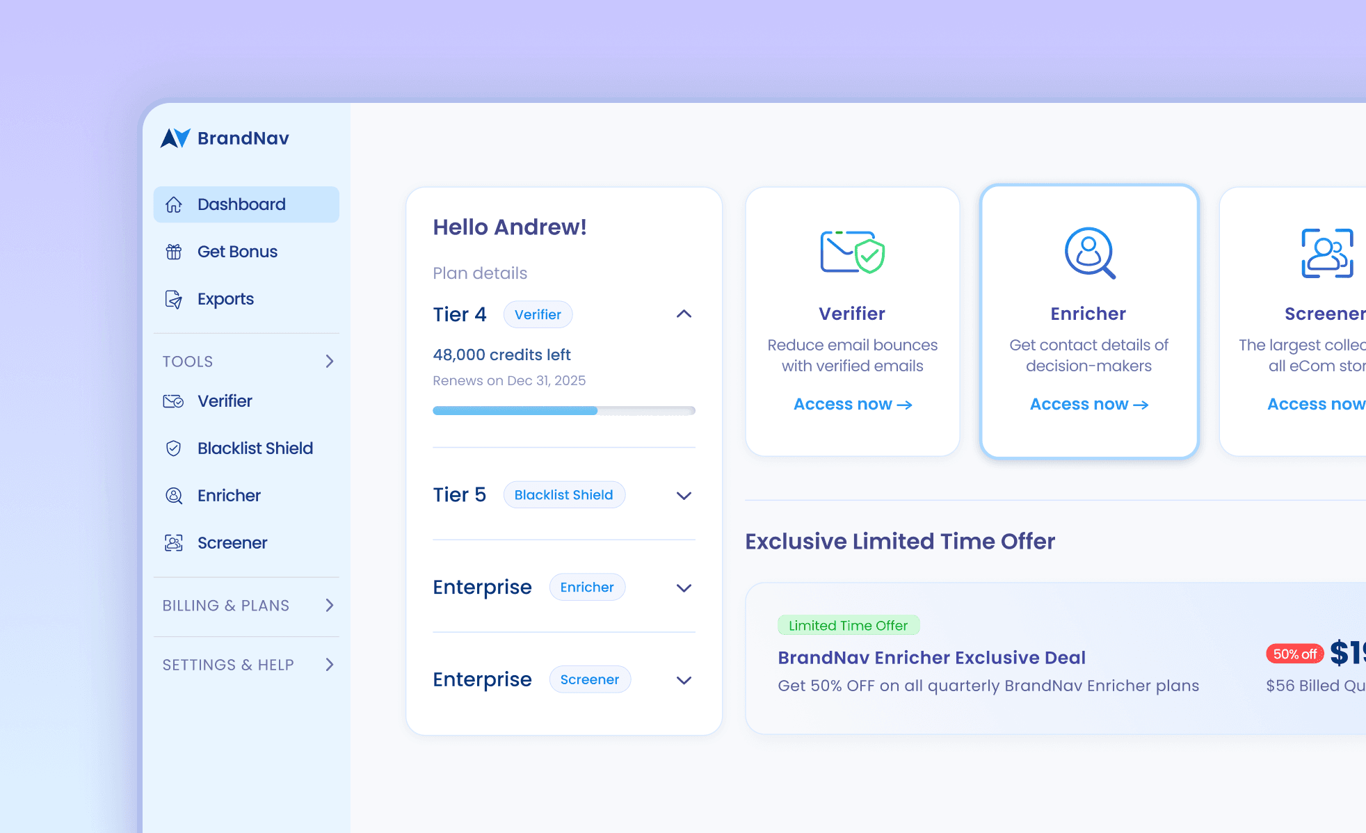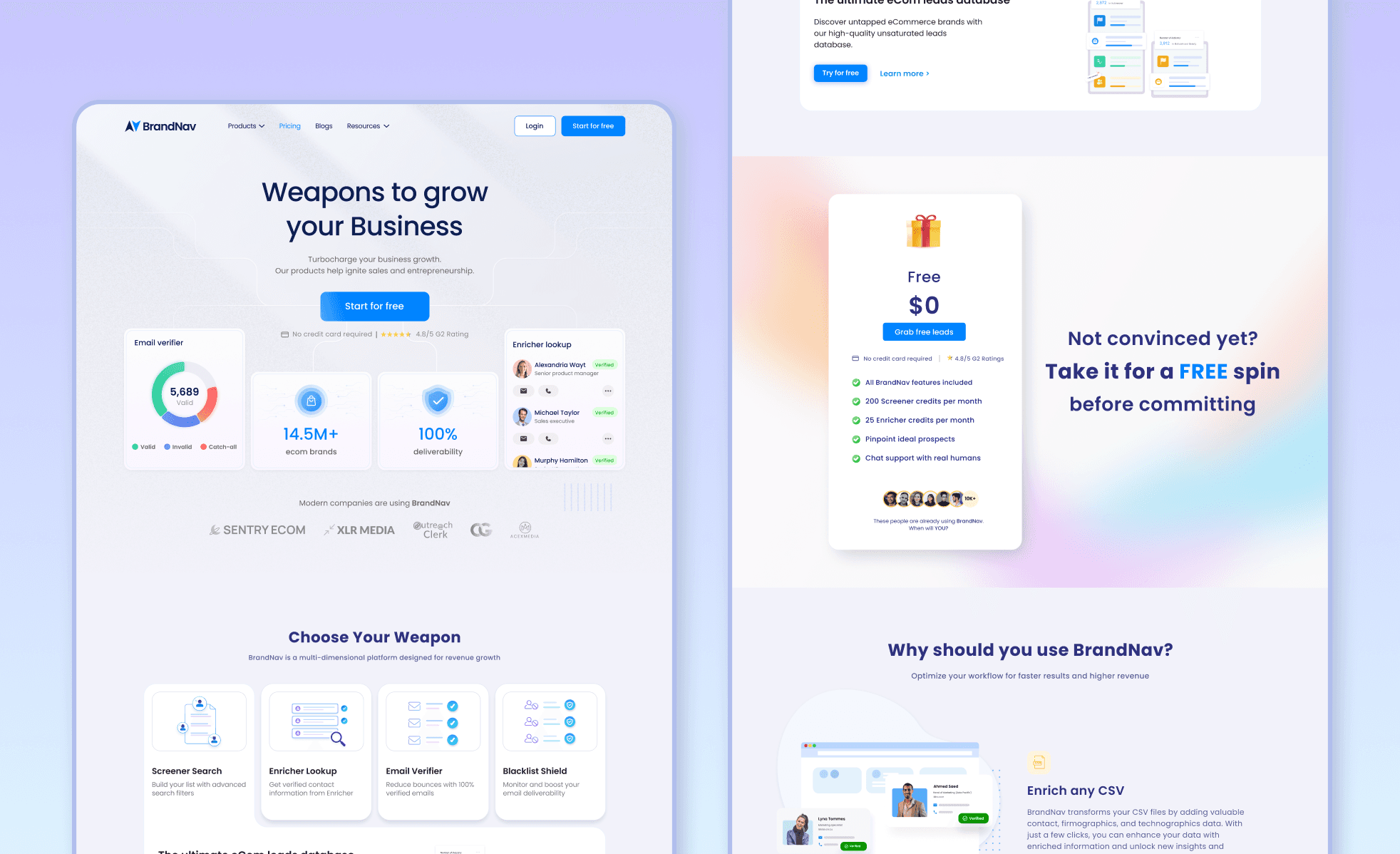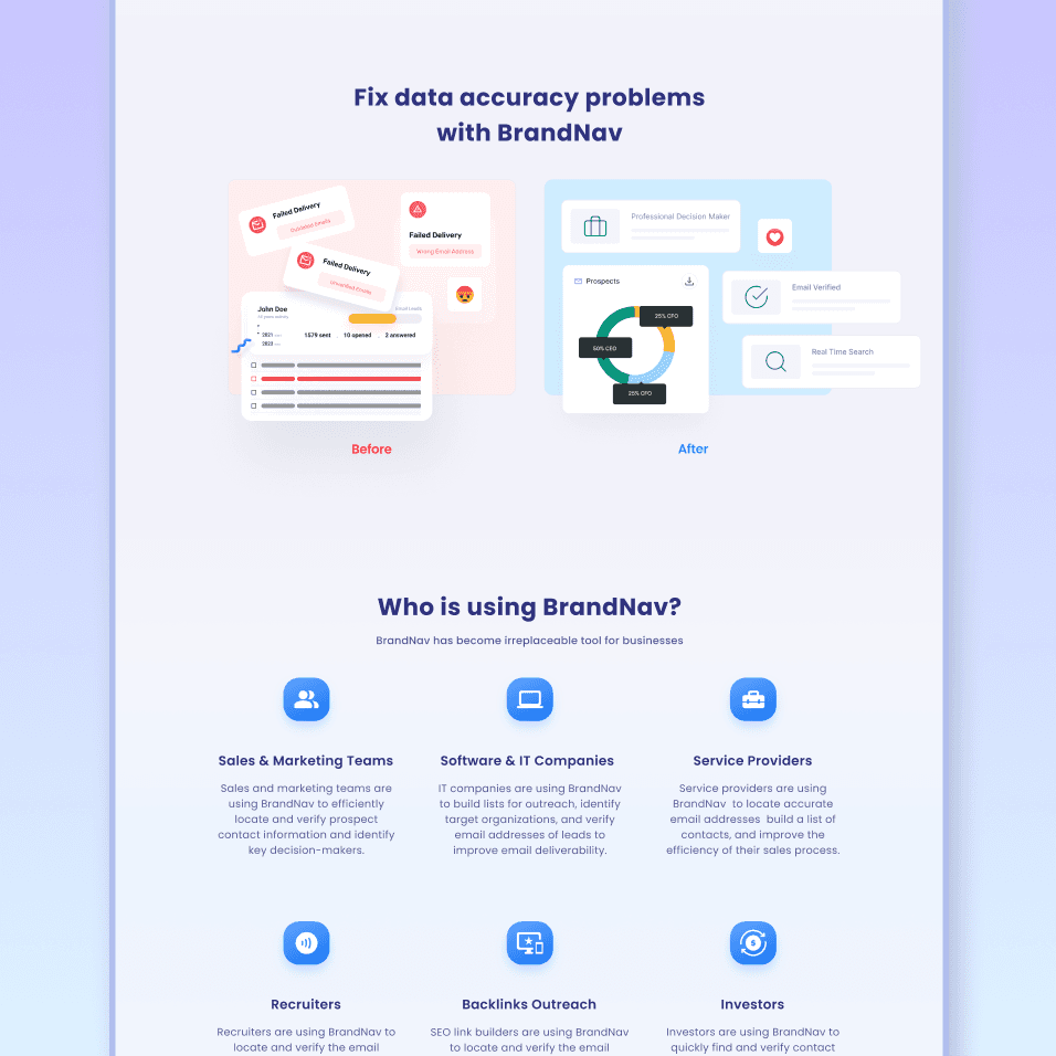 The final product delivered a streamlined platform that helps sales and marketing teams quickly identify high-quality prospects and build targeted lead lists. By combining lead discovery, data enrichment, and email verification in a single system, BrandNav simplifies the prospecting process and enables teams to improve outreach efficiency and conversion rates.