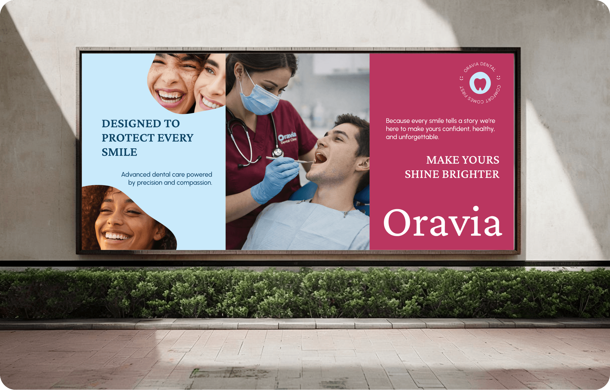 Oravia Dental Clinic is a modern dental practice focused on providing comfortable and patient-centered dental care. The project involved creating a refined brand identity, visual language, and digital presence that communicates trust, professionalism, and care. The goal was to design a calm and premium brand experience that helps patients feel confident and comfortable before even stepping into the clinic.
